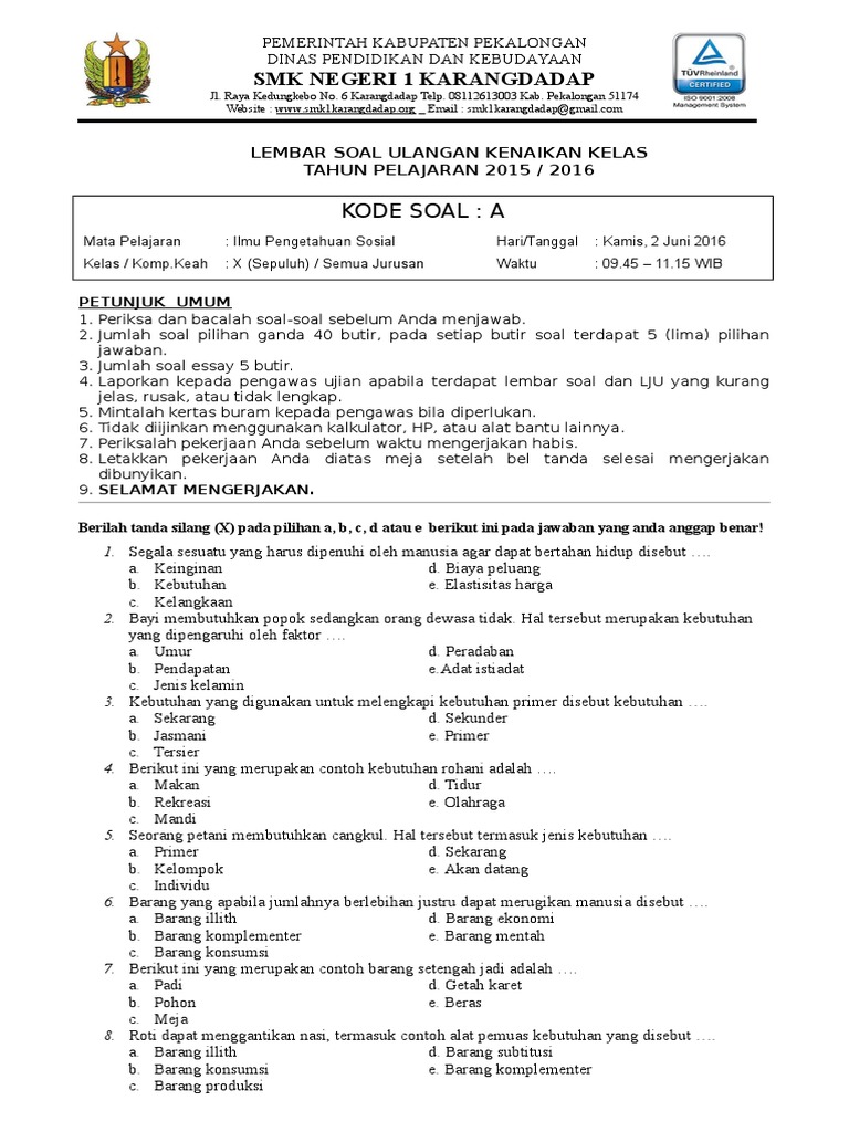 Bagaimana bisa ips adalah jurusan favorit bagi yang memilihnya. Soal uas ini disusun sesuai dengan kurikulum ktsp dan dihadirkan untuk berlatih uas ganjil tahun 2017. Berikut ini lah contoh soal nya, semoga membantu…. Lks i pa smp kelas 7 kurikulum 2013 semester 1. Soal terdiri dari 30 soal pilihan ganda.