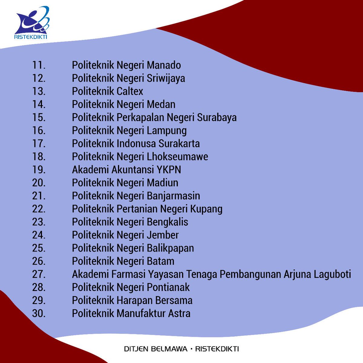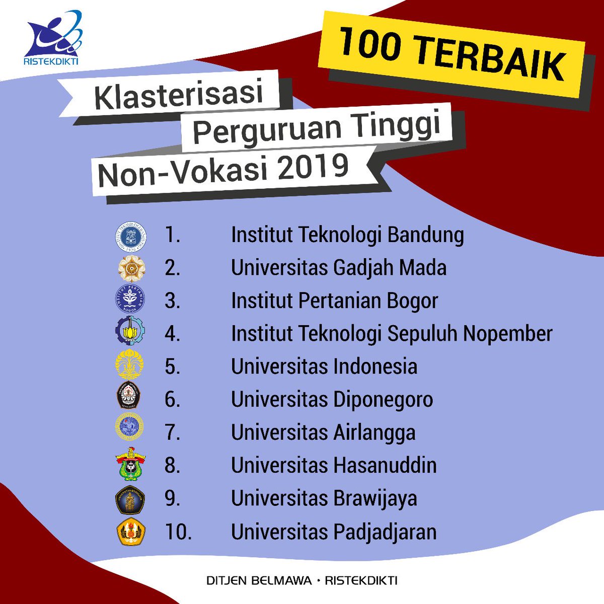 Peringkat universitas di indonesia 2020 versi kemendikbud.